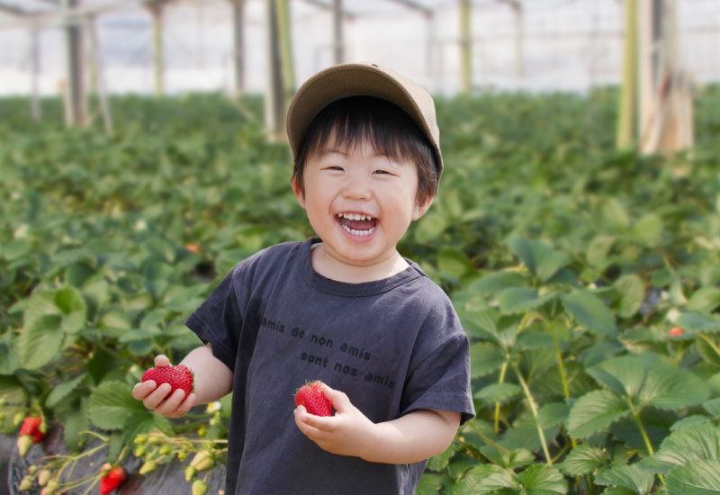 広大なイチゴ畑で美味しい真っ赤なイチゴを作っています。